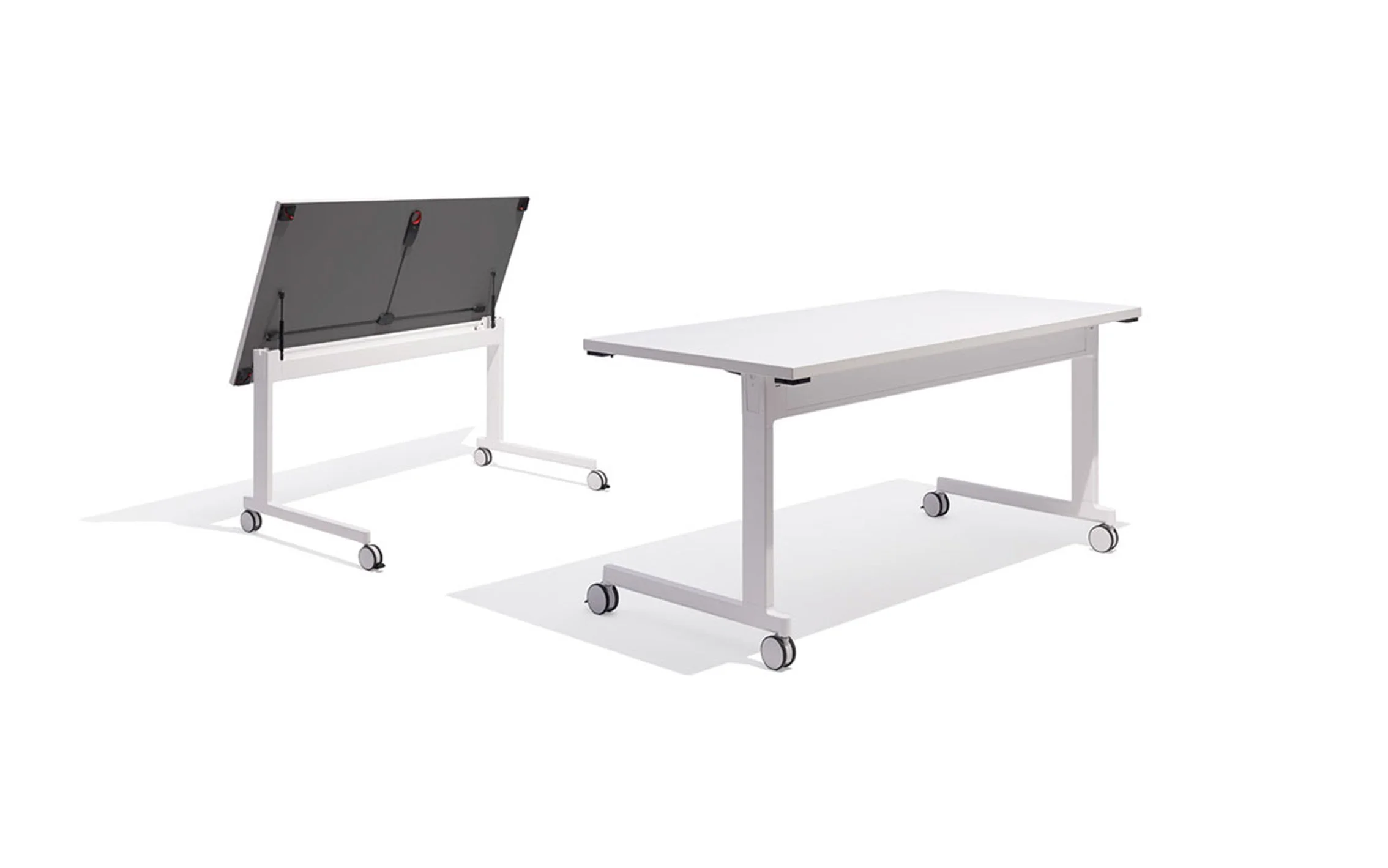 The Y-Leg is a four-sided table that works well for collaborative meetings or personal desking. The Y-Fold table features an ingenious folding mechanism and can be folded and tucked away when not in use. A markerboard laminate top option is also available, which further enhances the versatility.