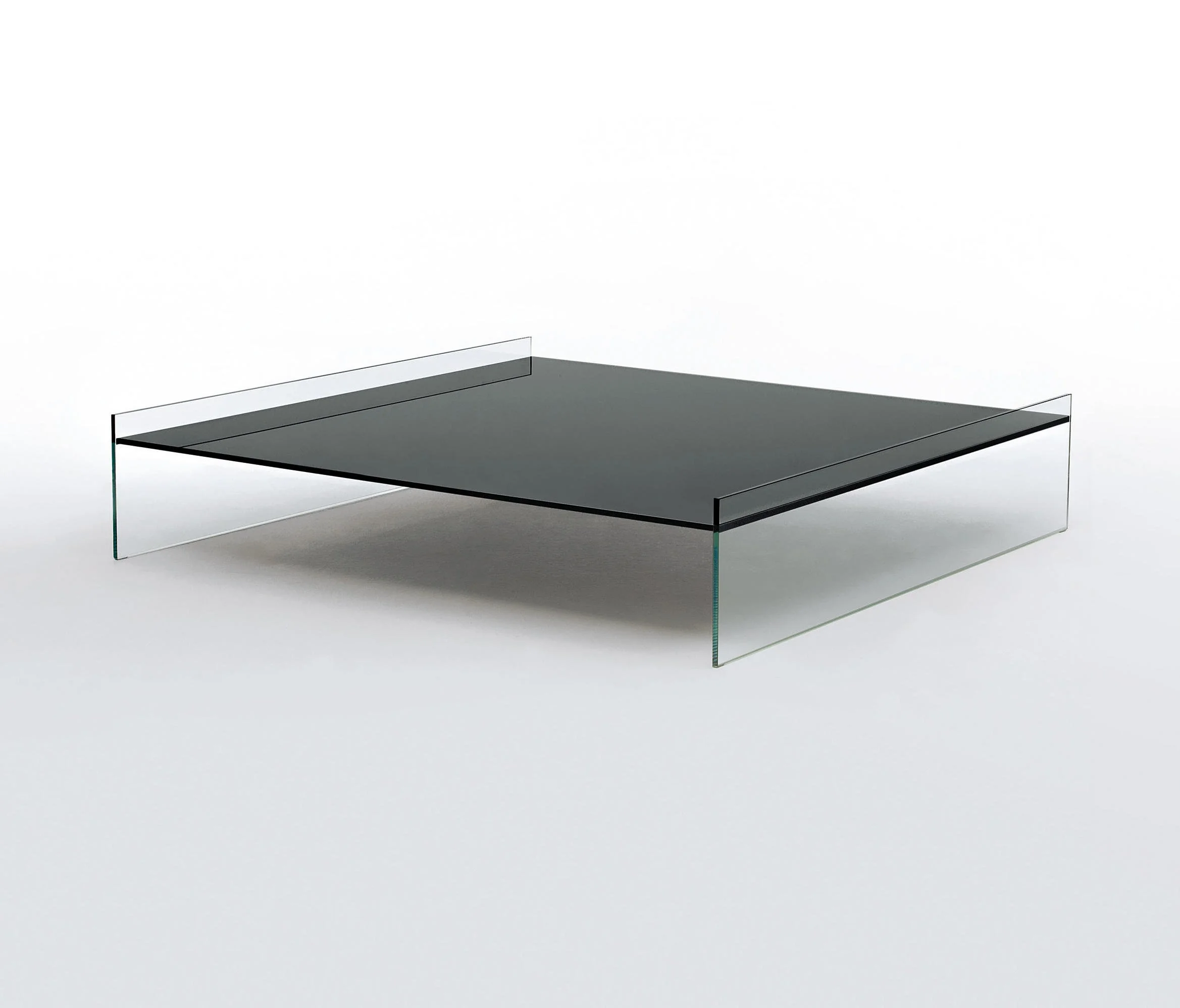 Surface: Designed with Piero Lissoni and Carlo Tamborini, the Surface table is constructed from a single sheet of float glass which is supported on four L-shaped glass legs.
