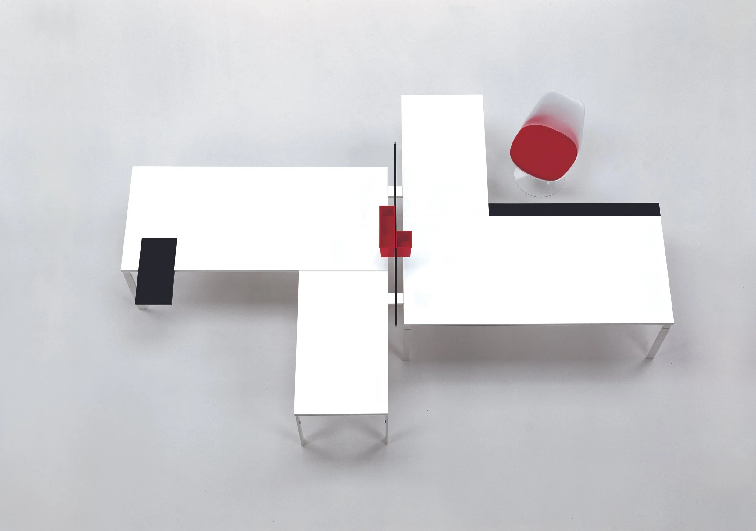 Simplicity of complexity. Wa is a highly functional, flexible office furniture system based on a building brick principle. The forms are simple and geometric creating visual silence in the office space and are all connected via a simple “clip” mechanism that involves no tools.